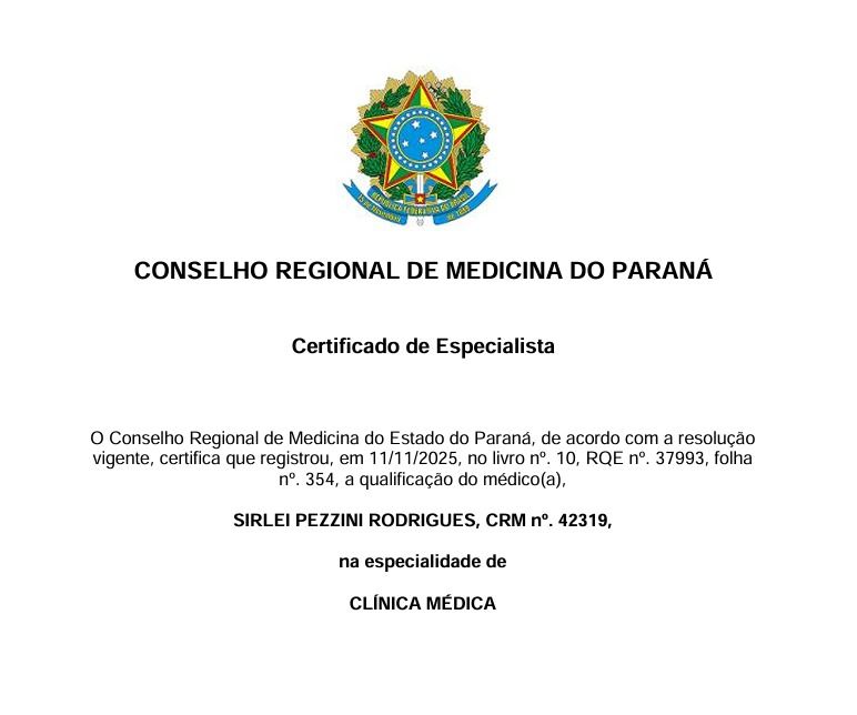 Somente elogios. À Dra. Sirlei tem um atendimento humanizado, além te estar sempre em busca de conhecimento e informações sobre saúde, sinto total segurança em seus diagnósticos.