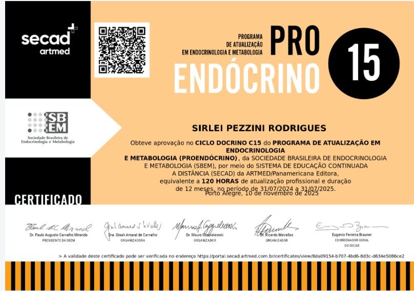 - Pós Graduação em Endocrinologia e Metabologia - POSFG/Sao Paulo ( 2017 - 2019).